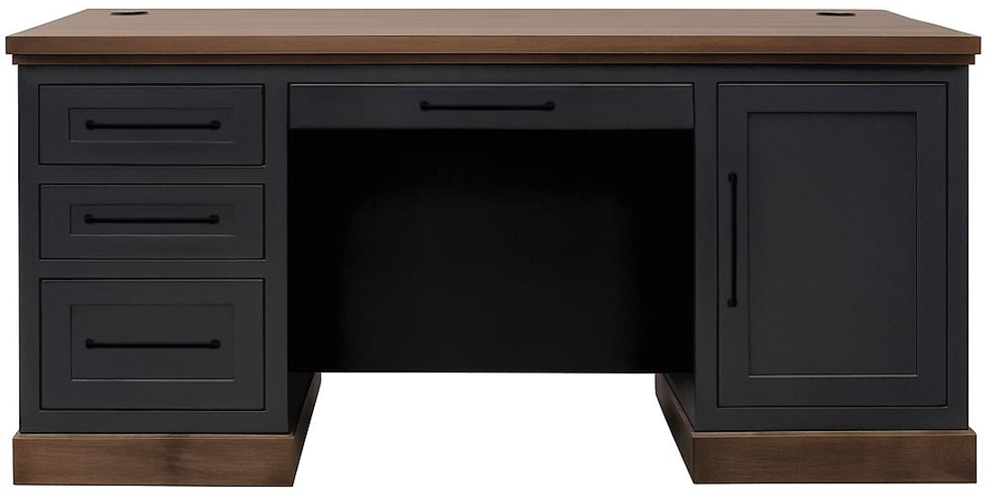 The Nora executive desk boasts clean lines and crisp, refreshing modern styling. Beautifully crafted from poplar solids, knotty alder solids and okume veneers, this computer desk is available in multiple two-tone finishes with black hardware. Ideal for your home office or any creative space, this desk includes one drop-down keyboard drawer.Read More