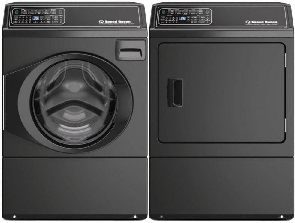 Speed Queen® Matte Black Laundry Pair with a 3.5 Cu. Ft. Front Load Washer and a 7.0 Cu. Ft. capacity front load electric dryer. ADD * 8" Black Laundry PedestalRead More